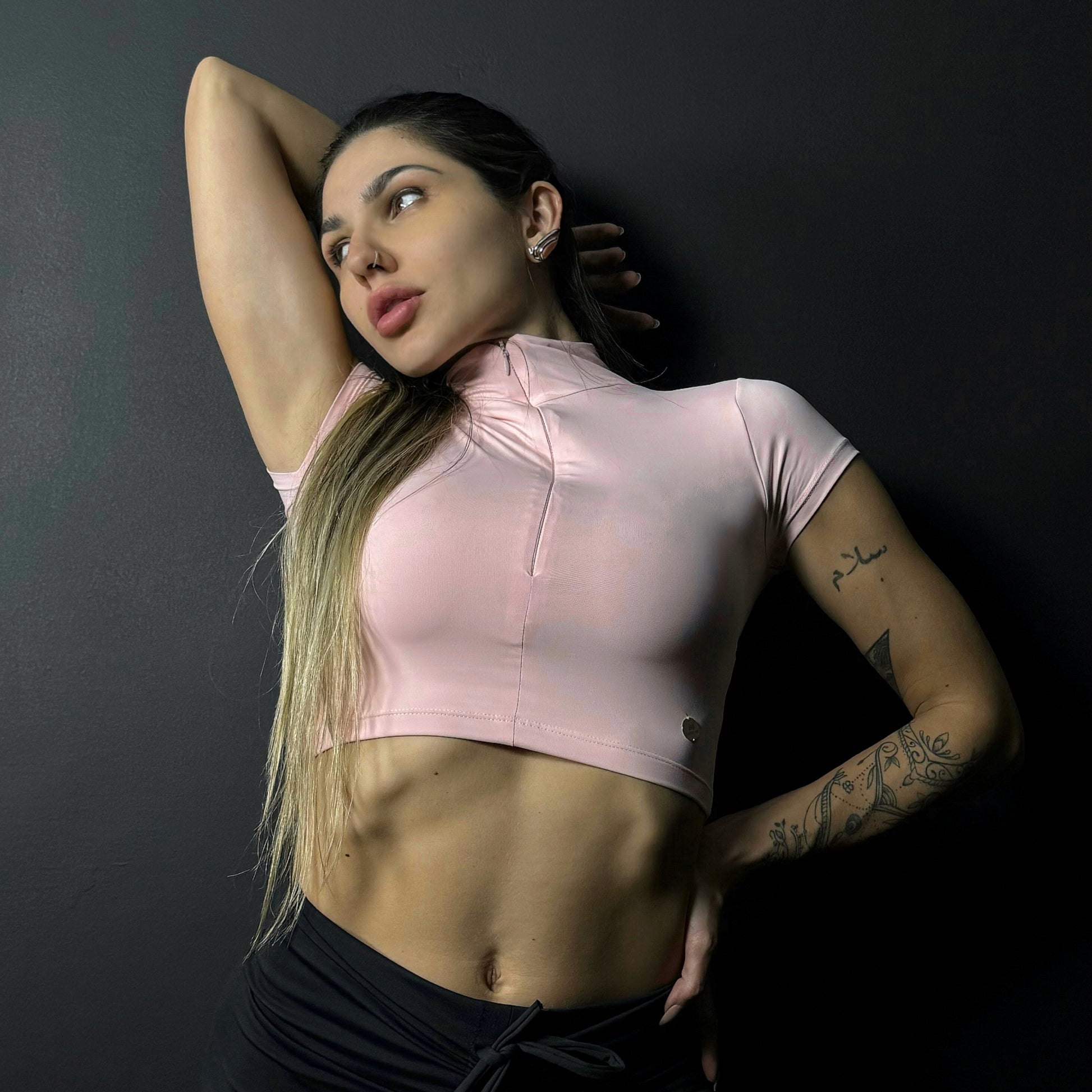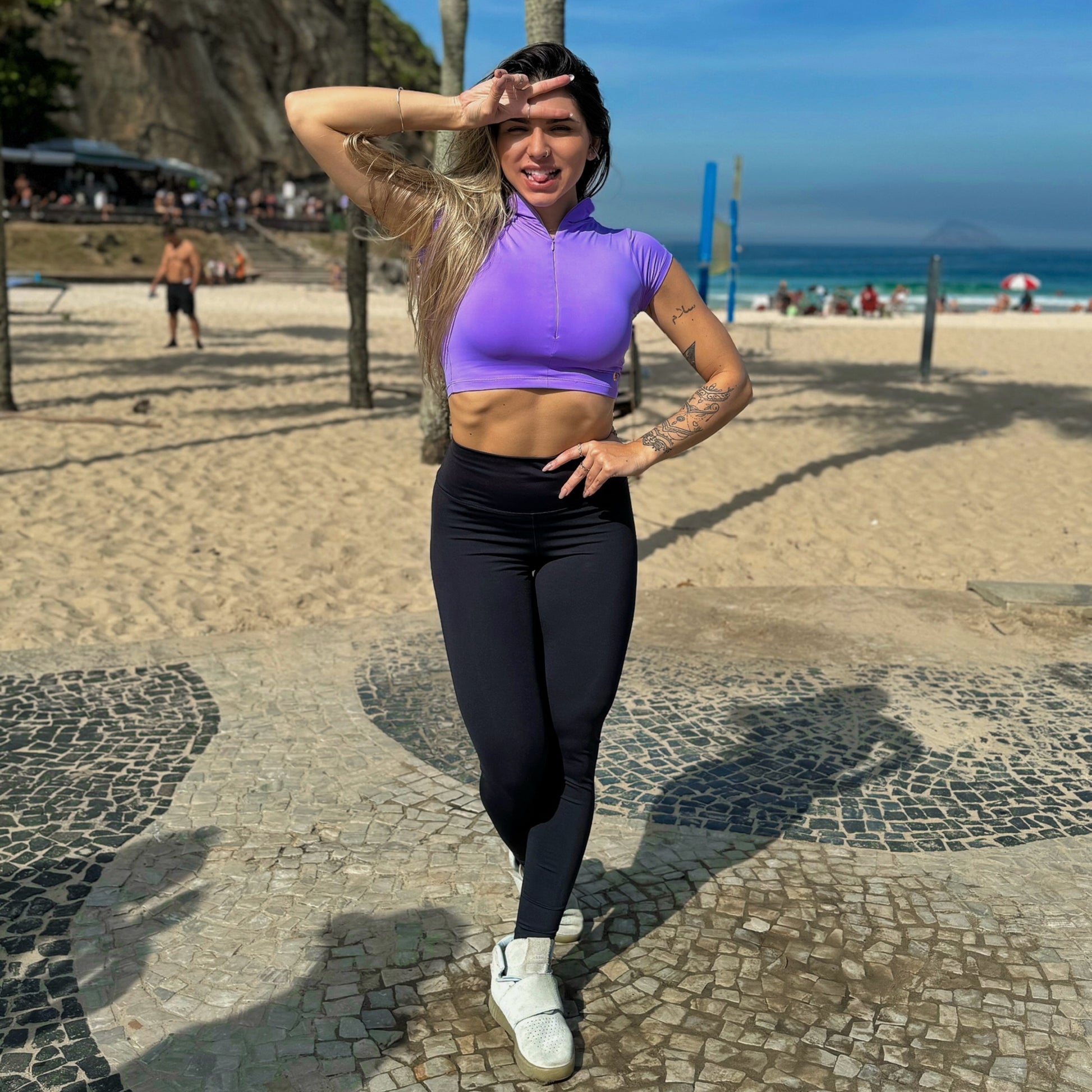 Confeccionado em Poliamida Light, o melhor do mundo fitness. Superfície lisa e macia ao toque, zíper invisível com possibilidade de deixar o top mais fechado ou mais decotado. Possui tecnologia que facilita a transpiração durante o exercício.